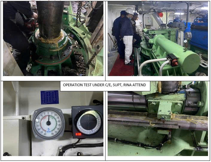 Testing & Verification: Perform steering gear test (35° port to starboard), load test if required, and final RINA surveyor witness.